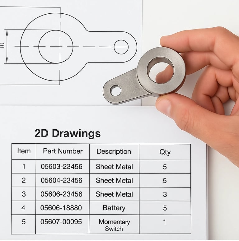 We create precise 2D manufacturing drawings with full GD&T details, tolerances, material specs, and finish requirements. Alongside, we provide a clear and structured Bill of Materials (BOM) to streamline your production, sourcing, and cost estimation. Our documentation ensures error-free communication from design to manufacturing.